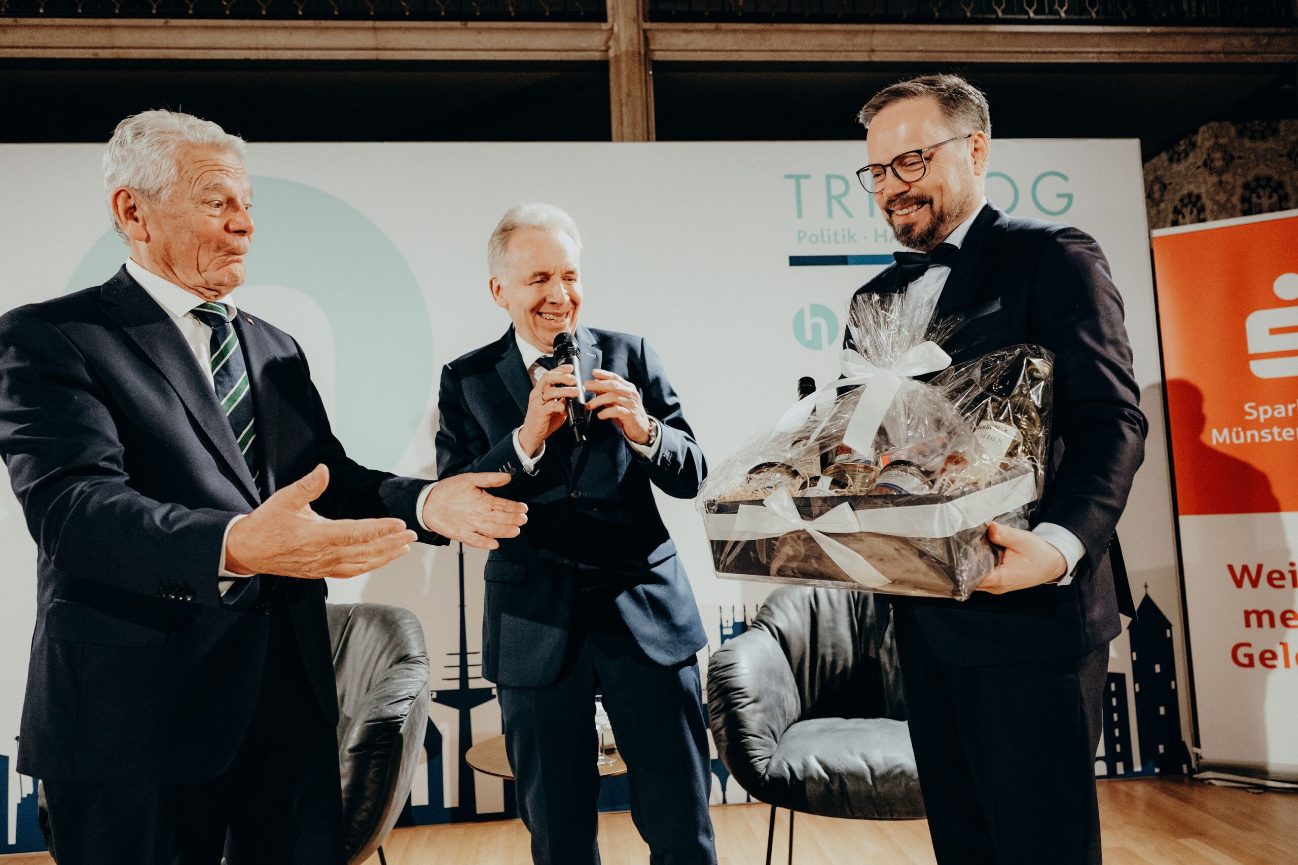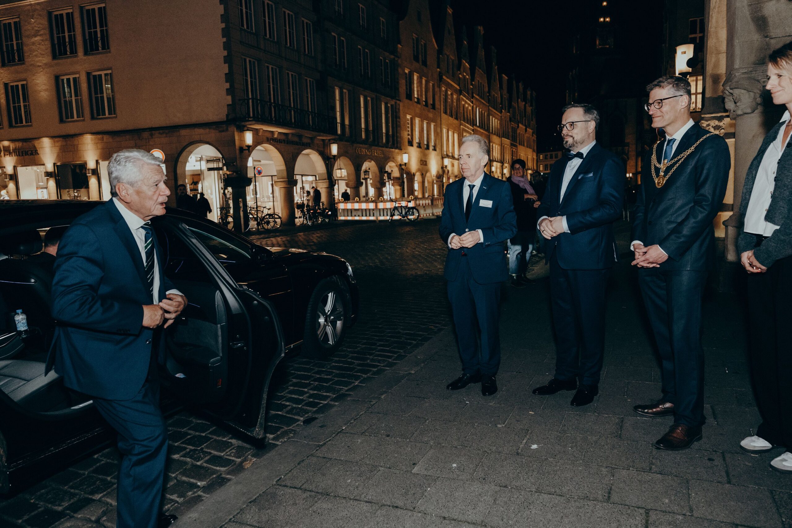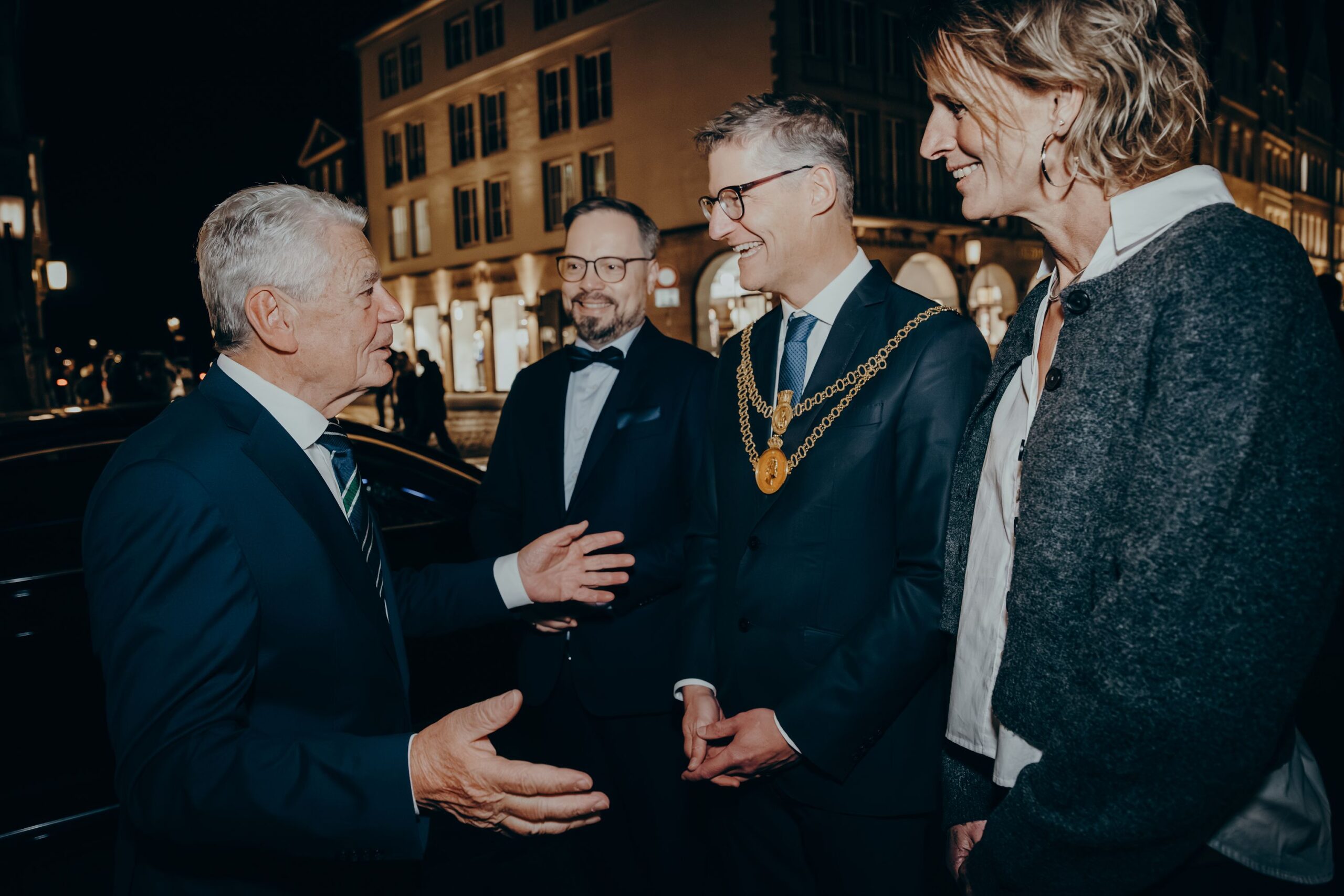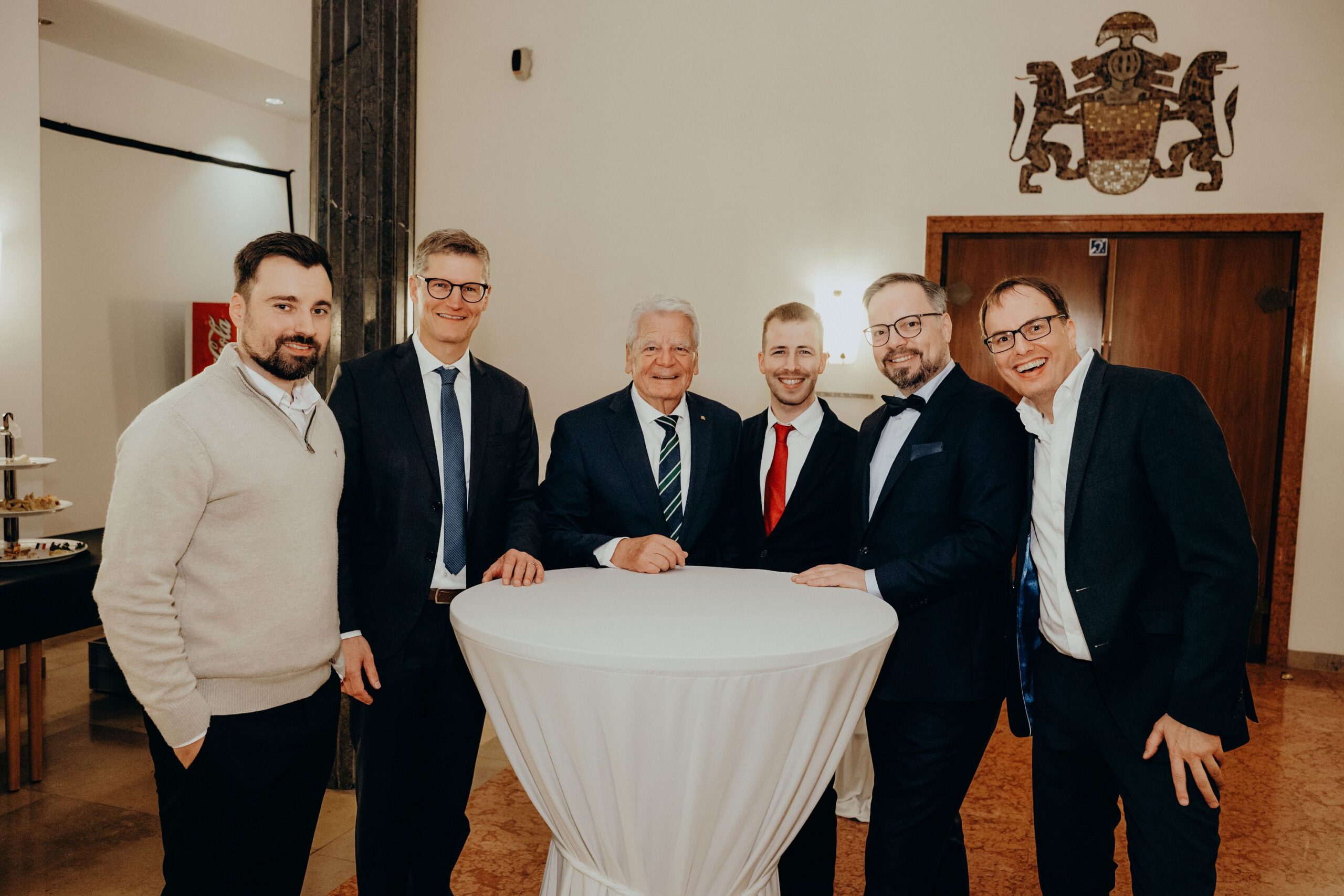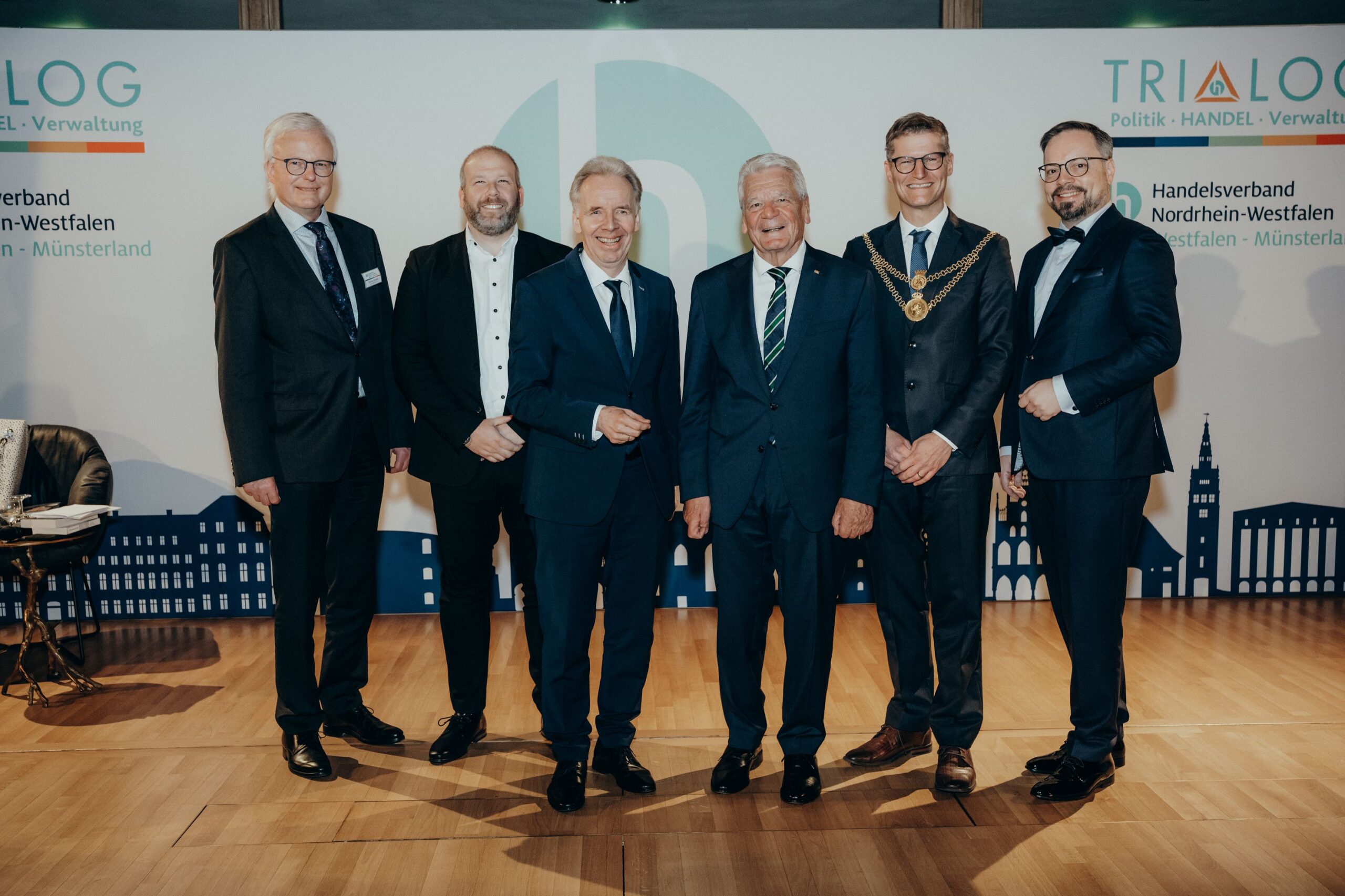 v. l. n. r. Thomas Schäfer (Geschäftsführer HV), Lars Gilke (Vorsitzender HV), Johann-Christoph Ottenjann (Stellv. Vorsitzender HV), Dr. Joachim Gauck, Tilman Fuchs (Oberbürgermeister Stadt Münster) und Tobias Buller-Langhorst (Geschäftsführer HV)