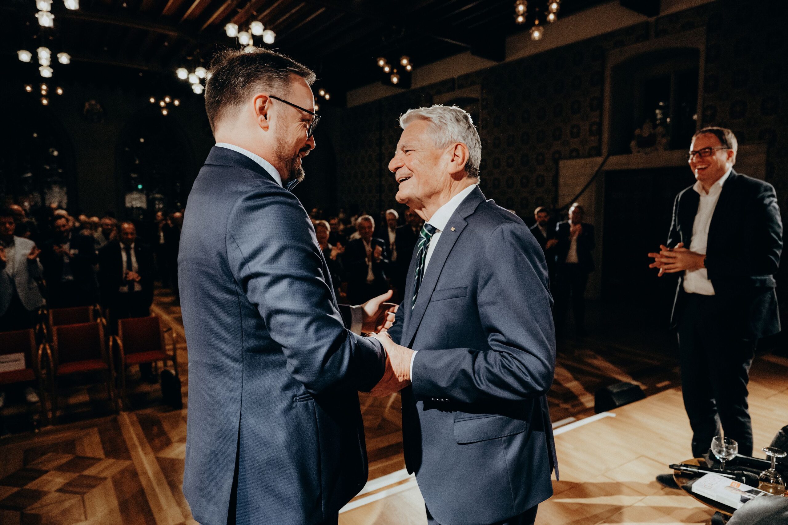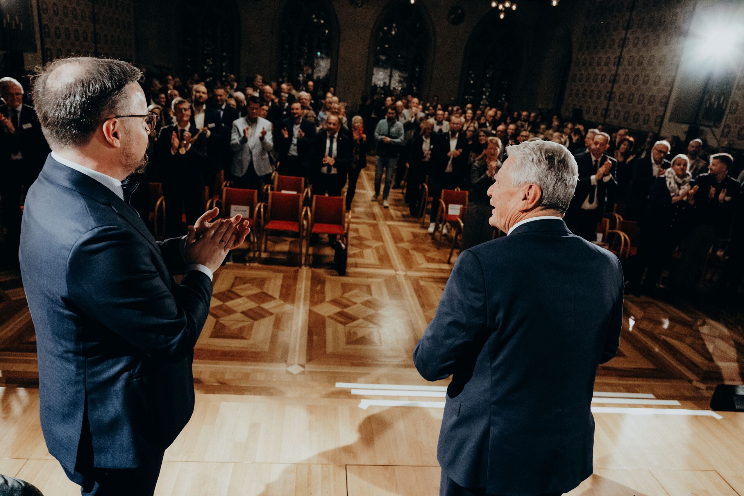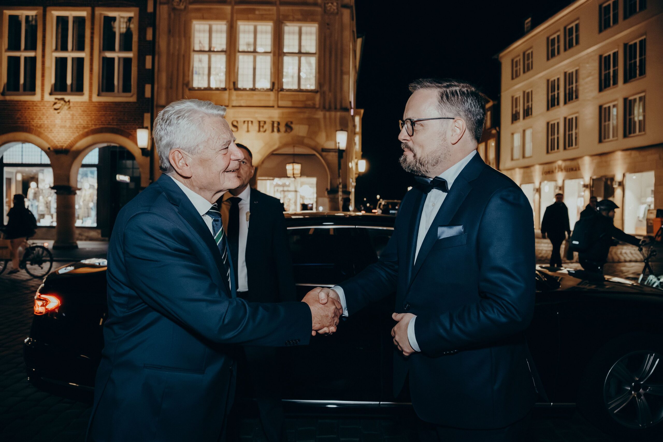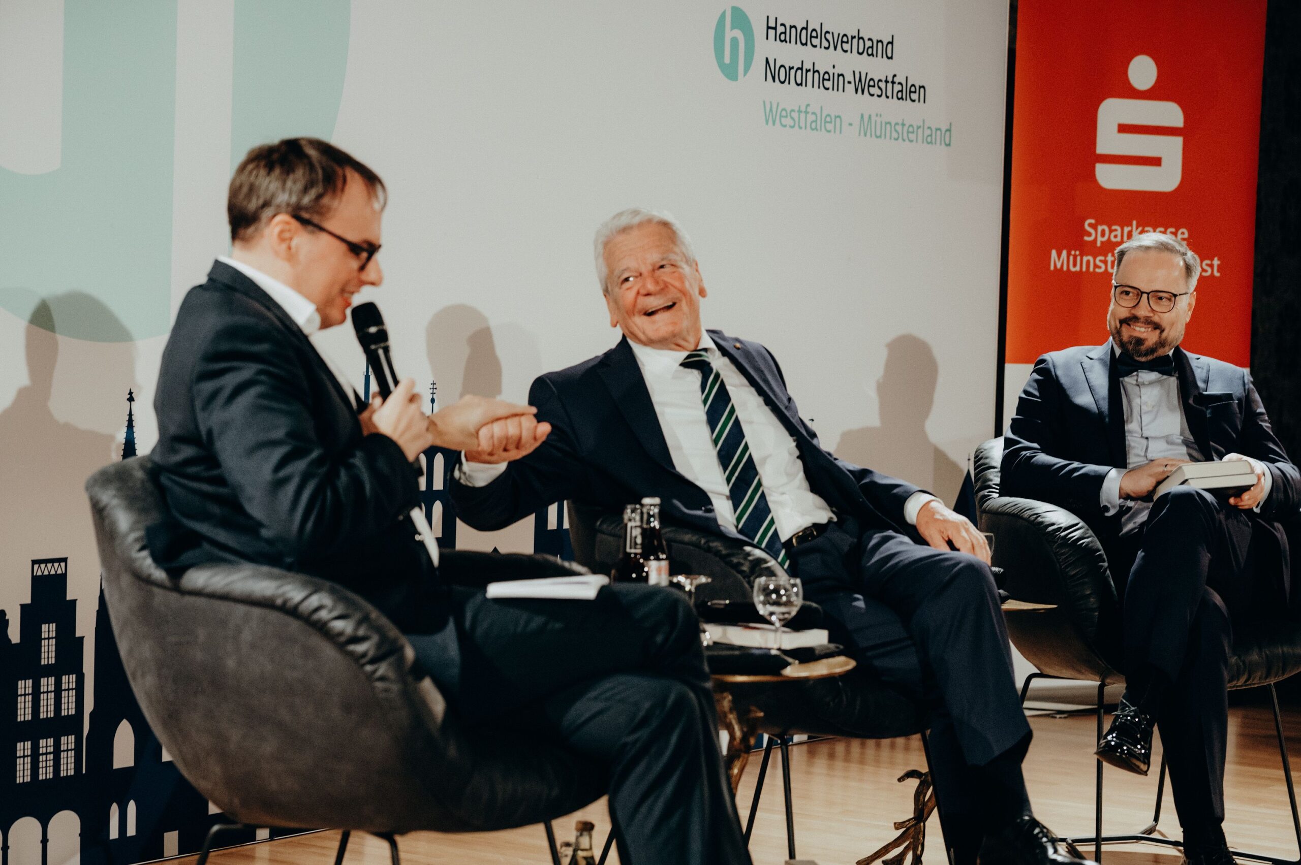 v. l. n. r. Thomas Schäfer (Geschäftsführer HV), Lars Gilke (Vorsitzender HV), Johann-Christoph Ottenjann (Stellv. Vorsitzender HV), Dr. Joachim Gauck, Tilman Fuchs (Oberbürgermeister Stadt Münster) und Tobias Buller-Langhorst (Geschäftsführer HV)