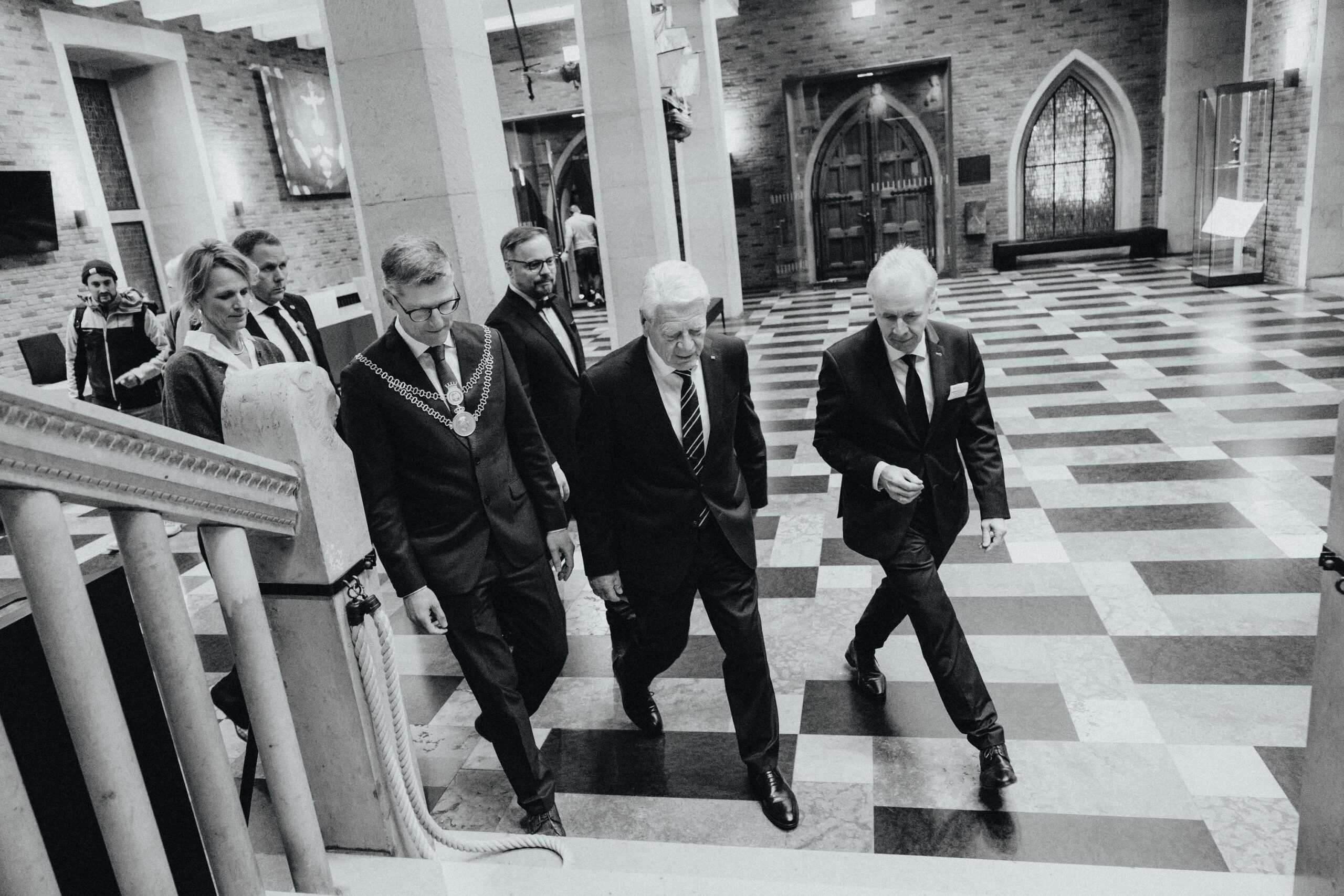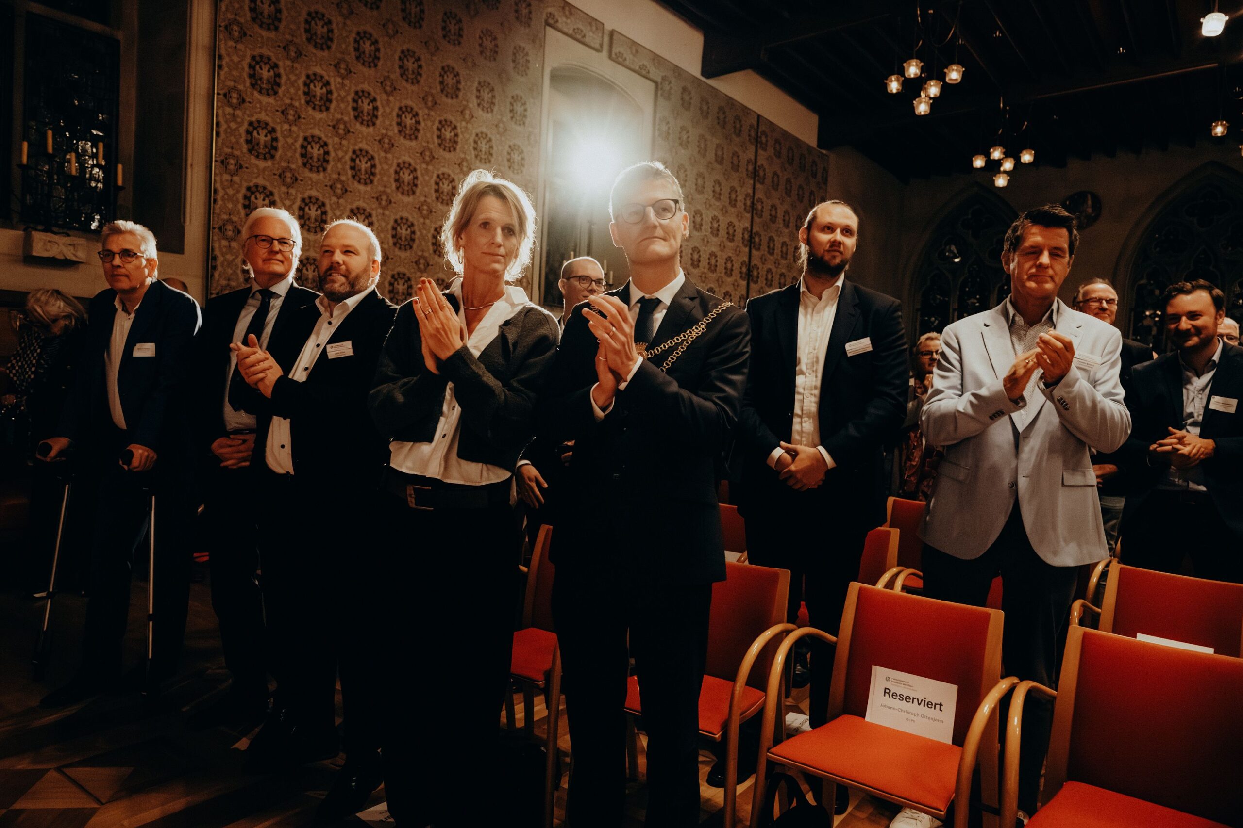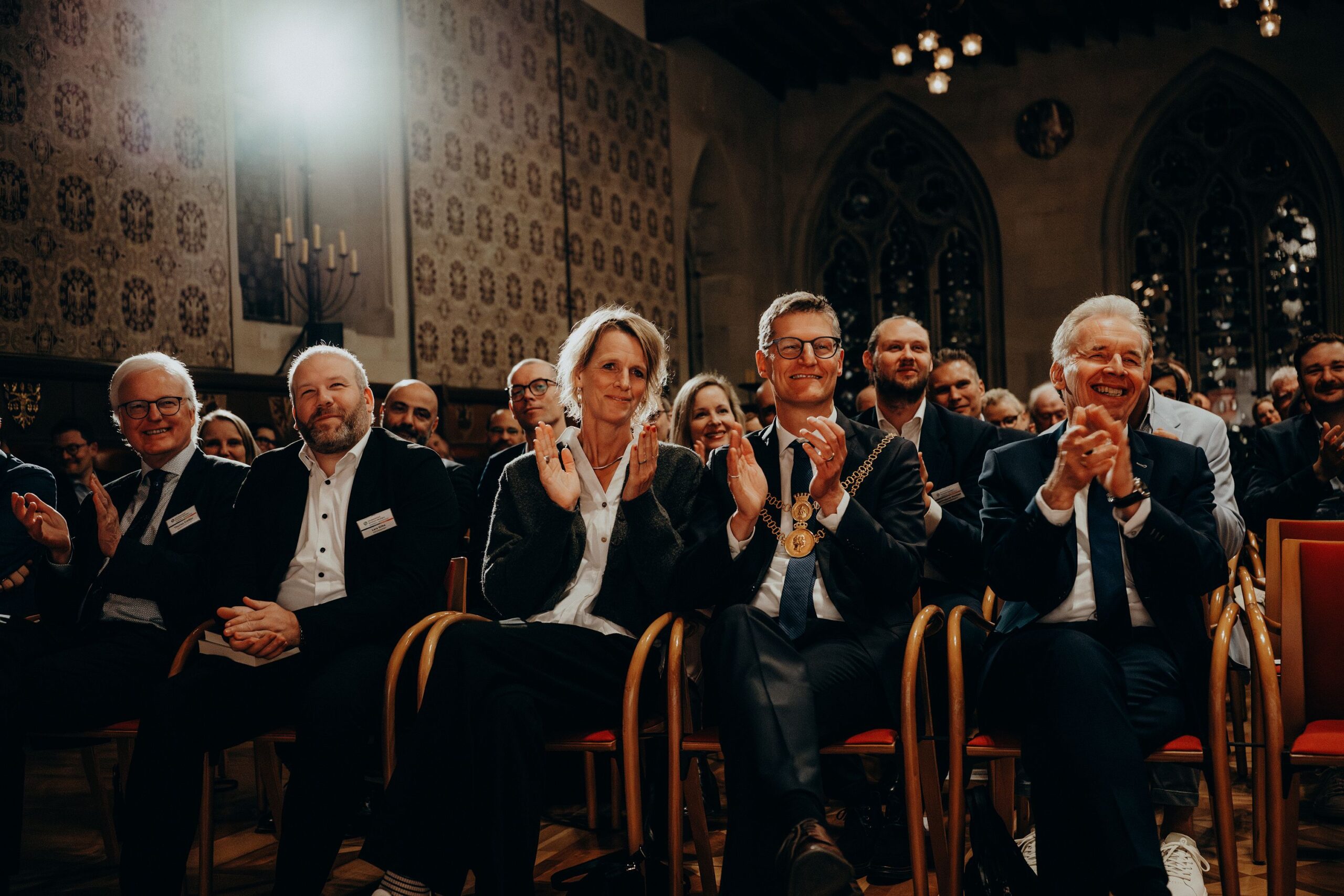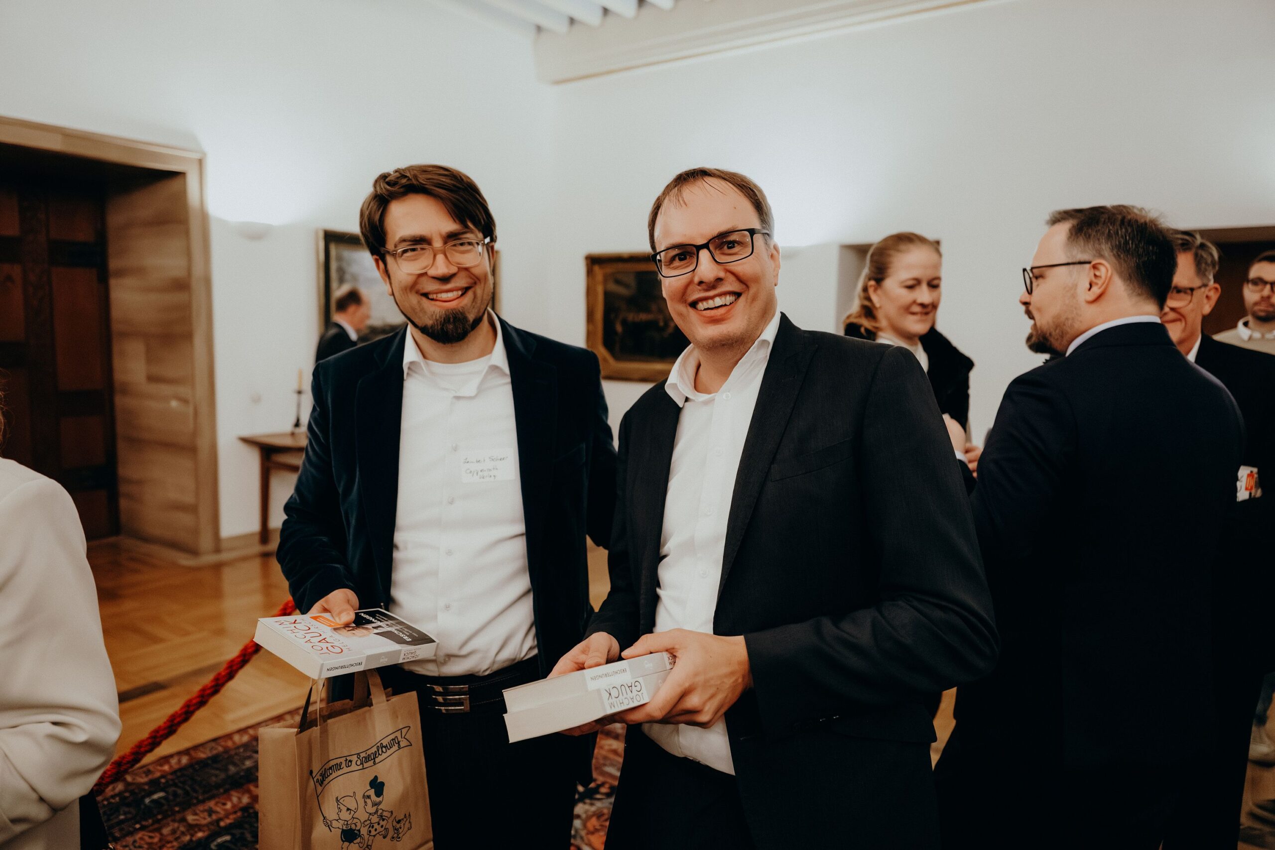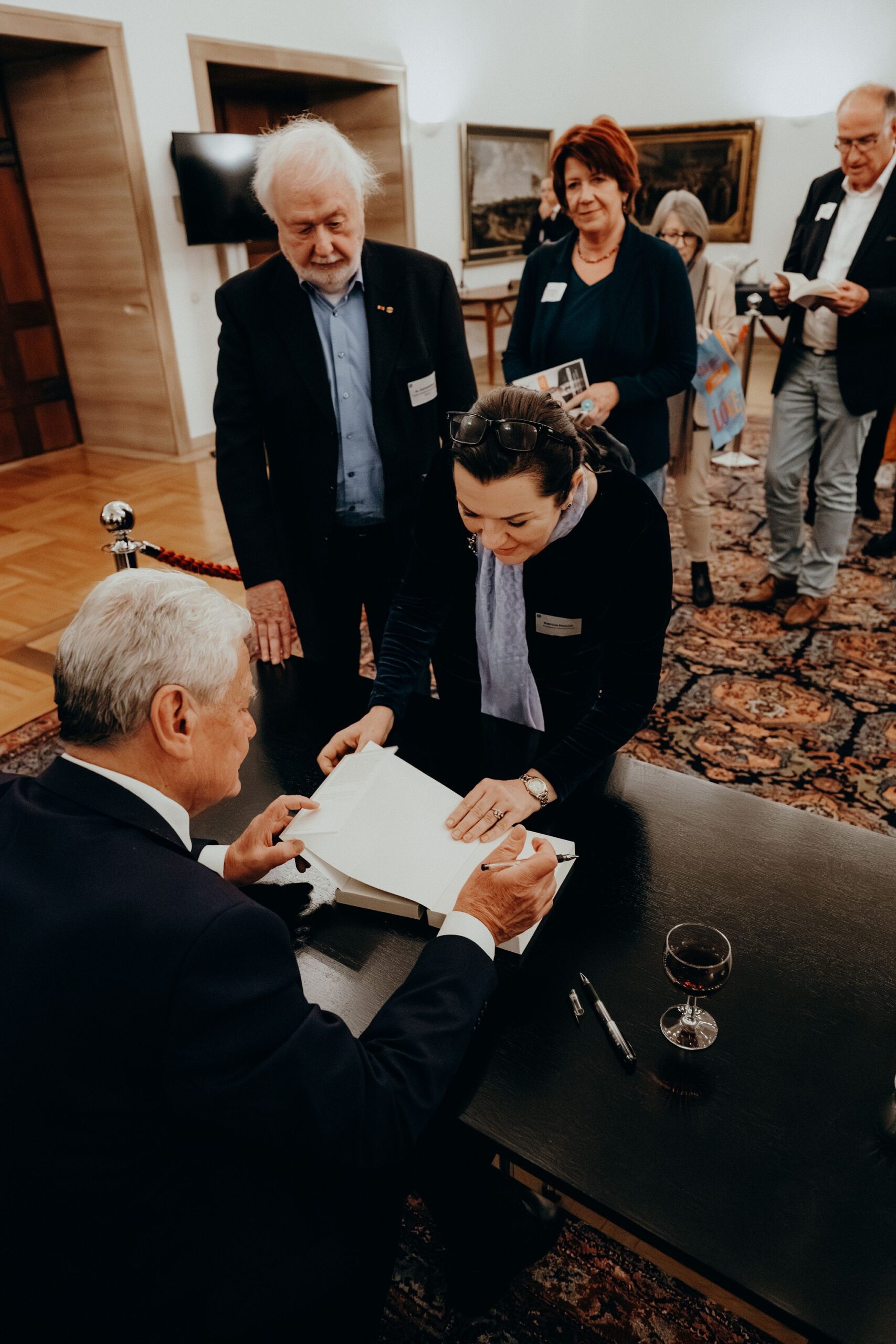 v. l. n. r. Thomas Schäfer (Geschäftsführer HV), Lars Gilke (Vorsitzender HV), Johann-Christoph Ottenjann (Stellv. Vorsitzender HV), Dr. Joachim Gauck, Tilman Fuchs (Oberbürgermeister Stadt Münster) und Tobias Buller-Langhorst (Geschäftsführer HV)