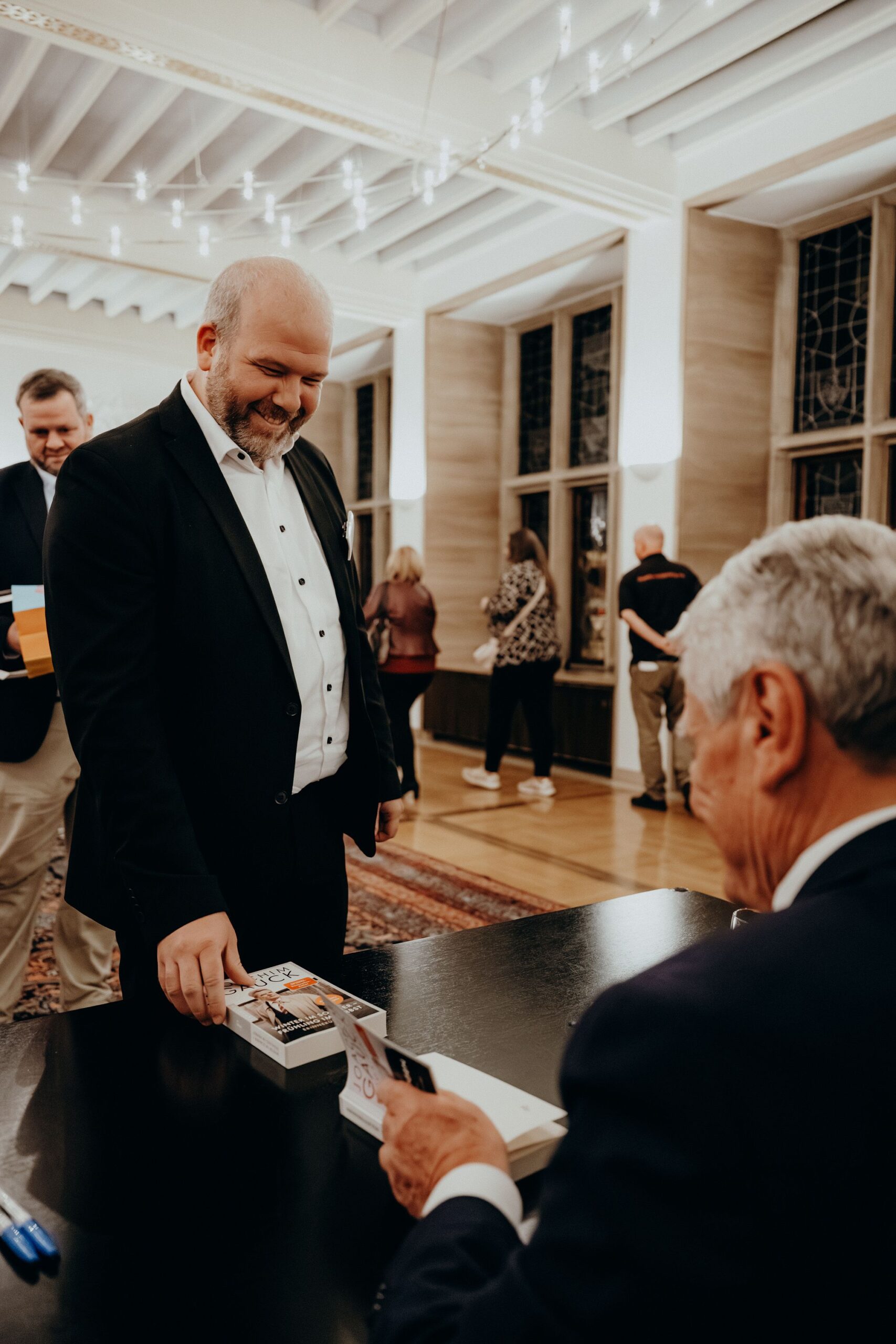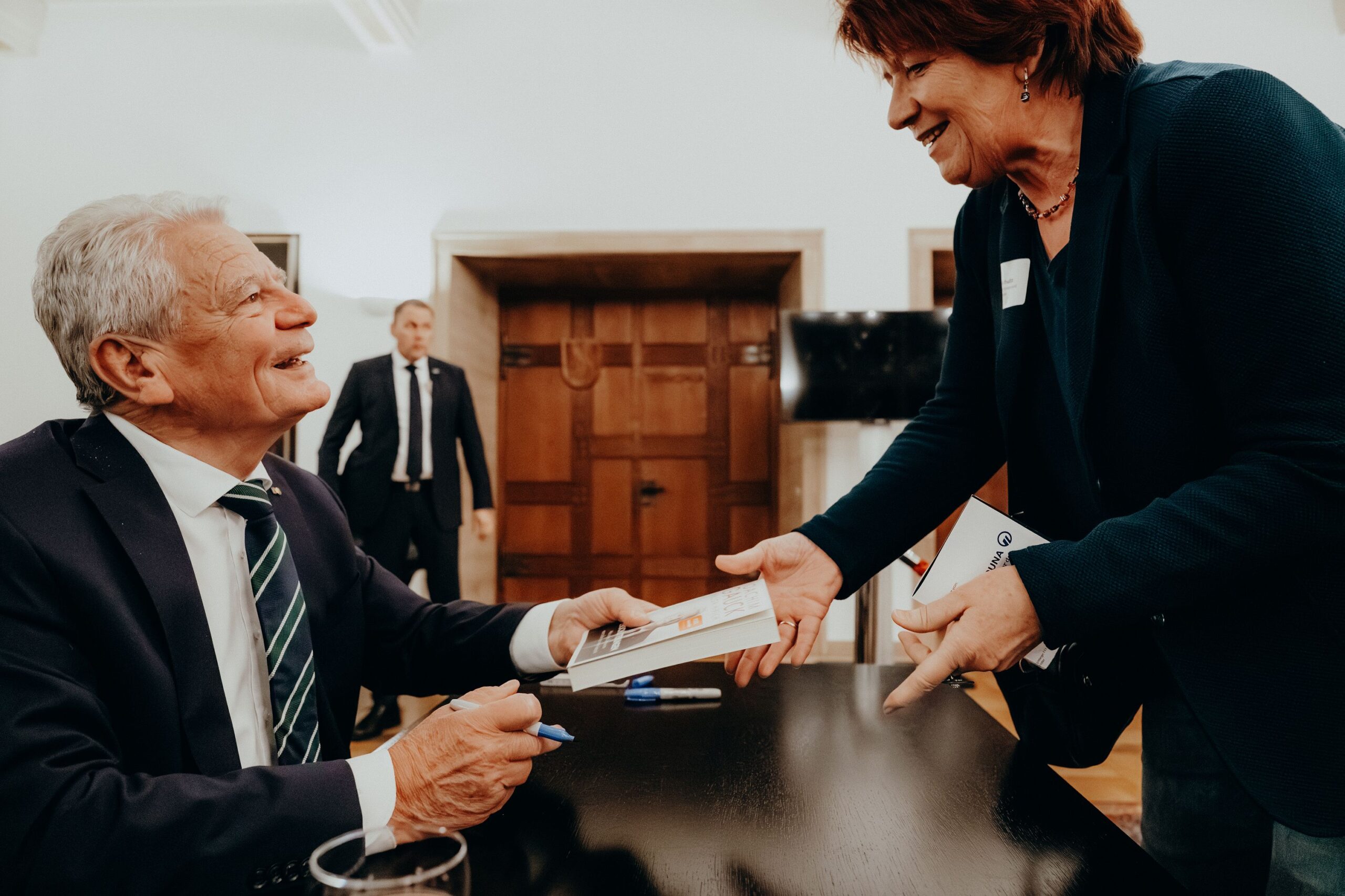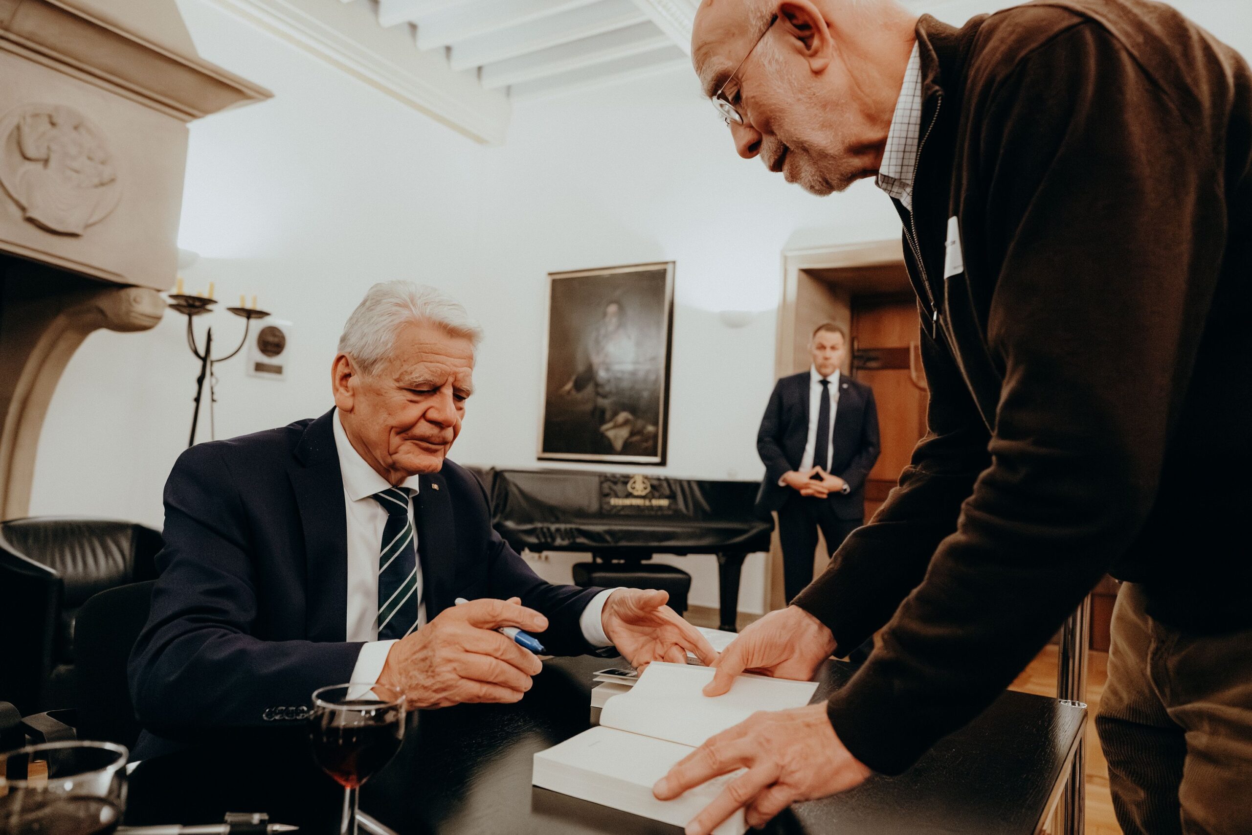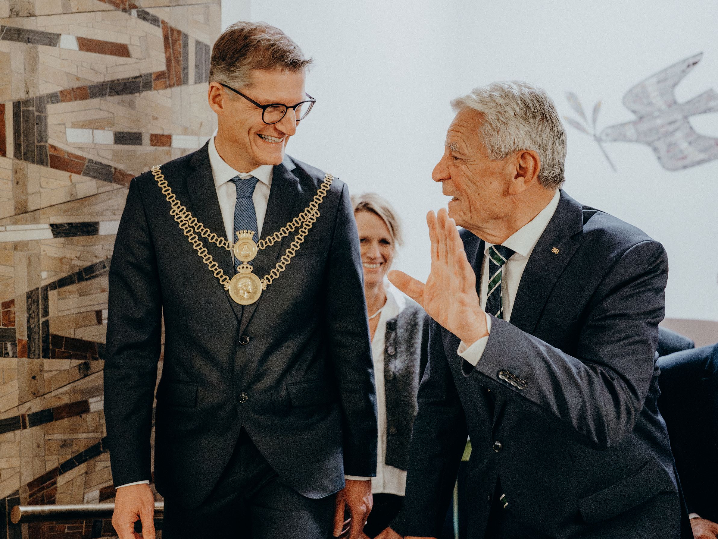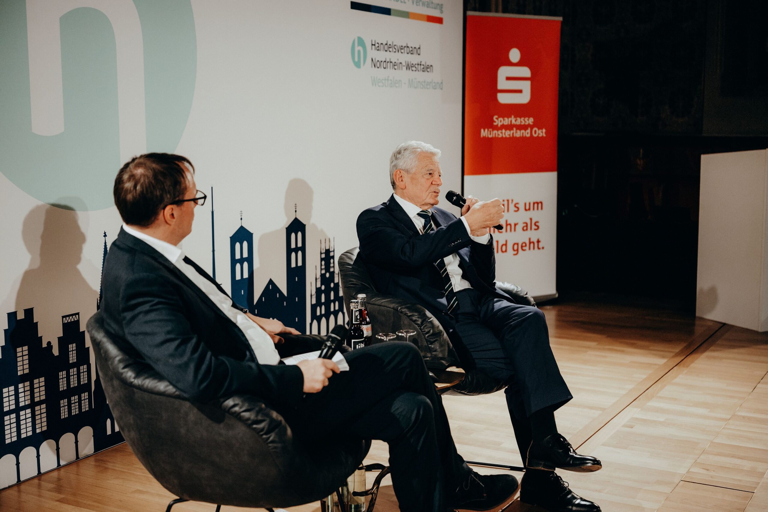 v. l. n. r. Thomas Schäfer (Geschäftsführer HV), Lars Gilke (Vorsitzender HV), Johann-Christoph Ottenjann (Stellv. Vorsitzender HV), Dr. Joachim Gauck, Tilman Fuchs (Oberbürgermeister Stadt Münster) und Tobias Buller-Langhorst (Geschäftsführer HV)